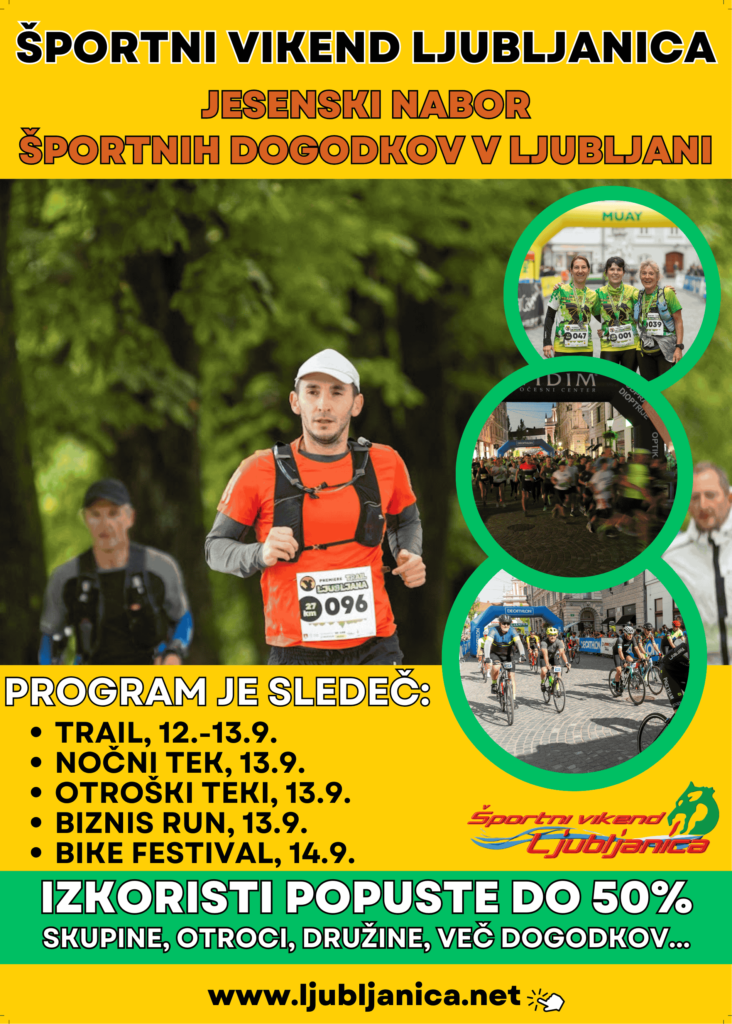 - 13.9., SOBOTA 8.00 TRAIL LJUBLJANA, START TRAS 54 KM, 35 KM, 27 KM, Stritarjeva ulica
