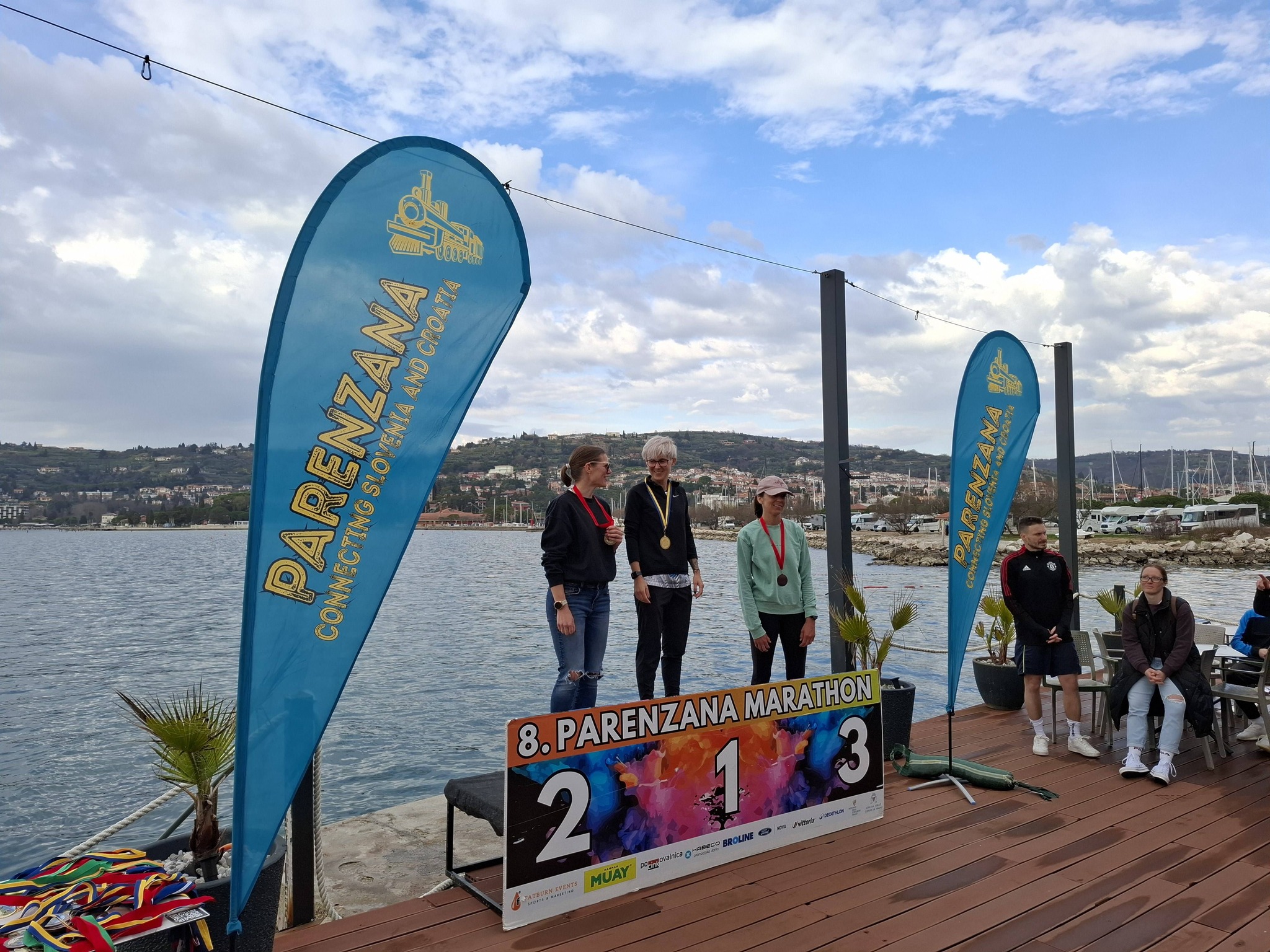 V skupni cilj v Kampu Lucija, Portorož, je tekače pospremilo odlično vreme. Pred podelitvijo nam je rahlo ponagajal dež, ravno toliko, da pogoji niso bili že kičasto popolni.